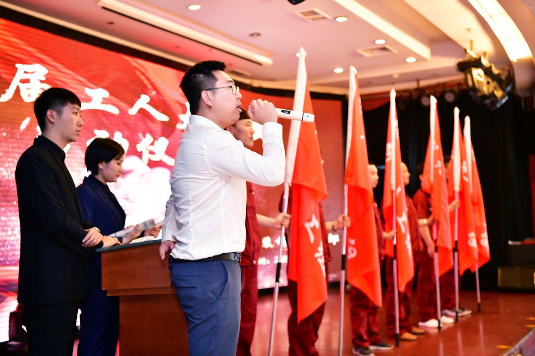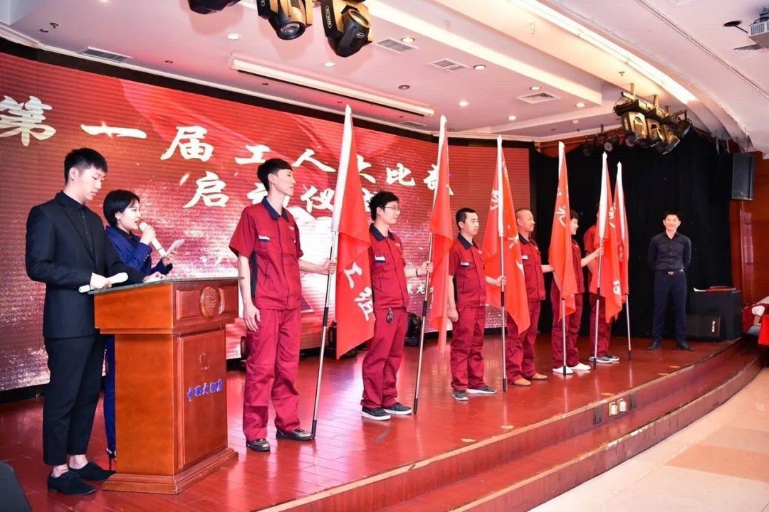 各工組組長、旗手就位,董事長親自授旗,為各位工匠加油打氣。