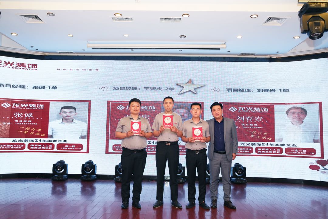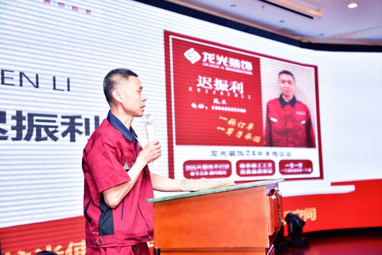 龍光裝飾董事長李長璽先生上臺做總結性發言,李總表示,2020年是龍光裝飾蓬勃發展的一年,公司全面升級,讓我們站在了更高的高度,做裝修就是做工程,做工程就是做口碑,腳踏實地山讓路,持之以恒海可移,最后希望所有龍光工程人在這不平凡的一年里,鼓足干勁,力爭上游,迅速掀起大干的熱潮。