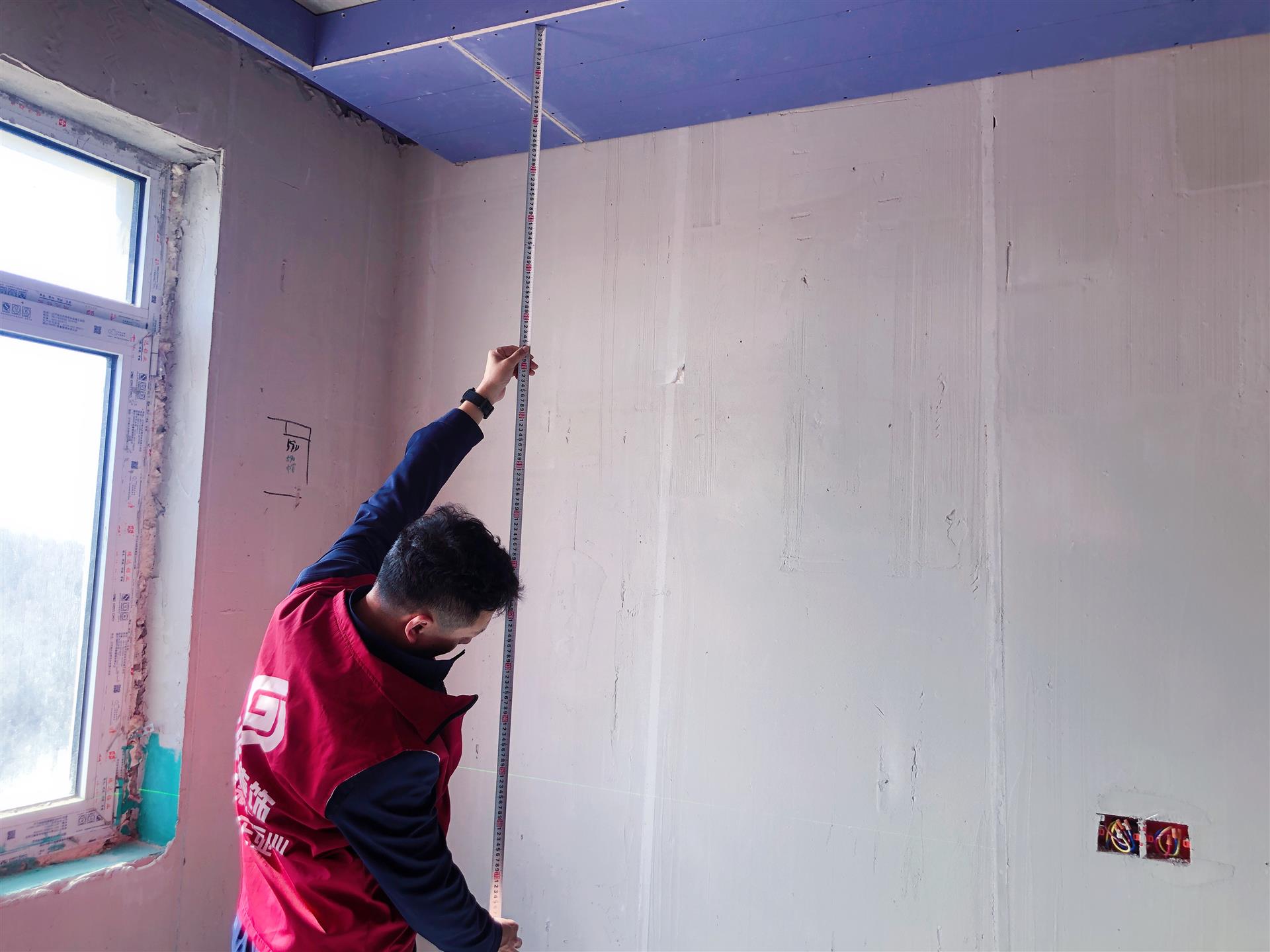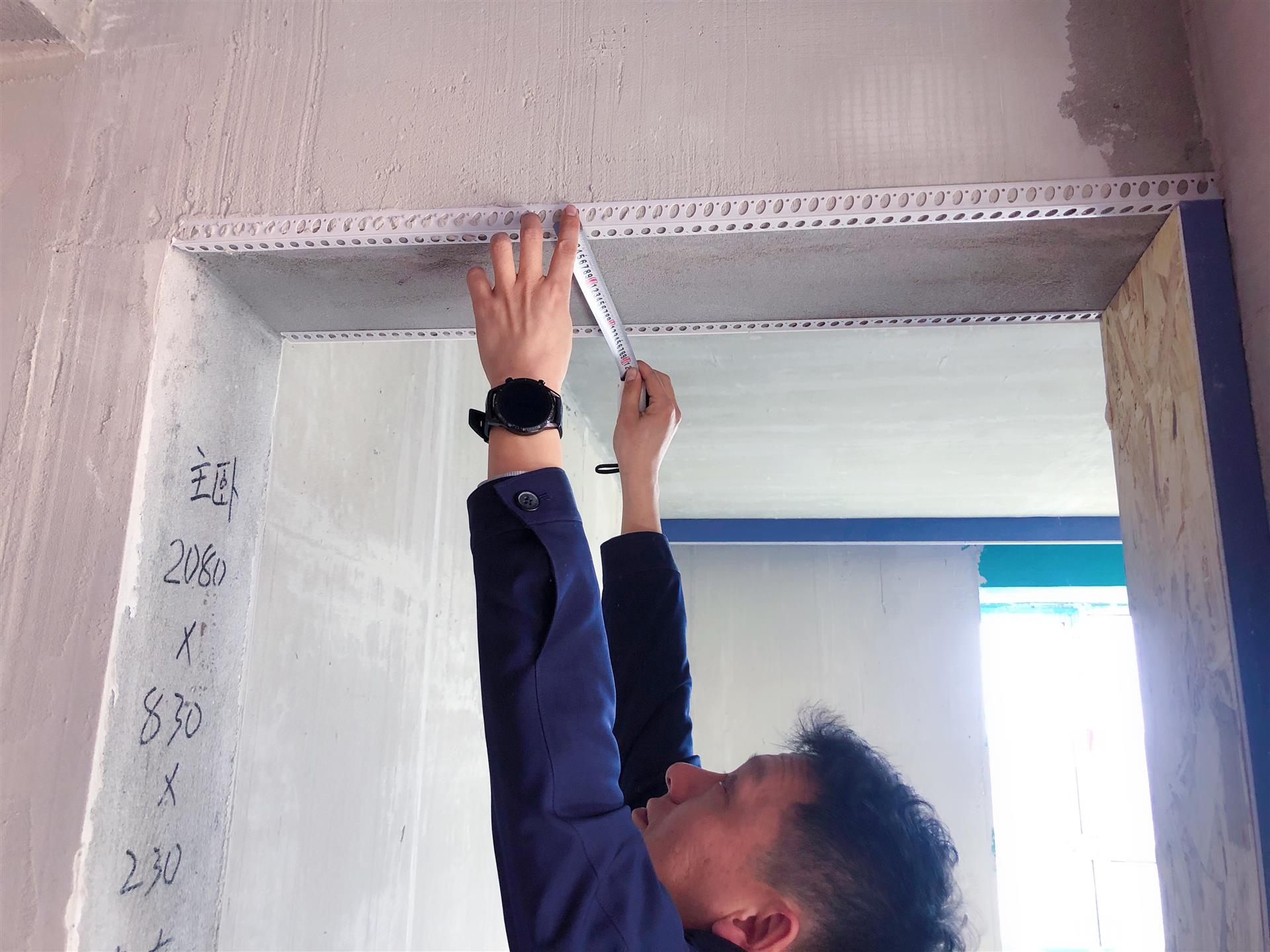 巡檢團正在測量門框寬度,確保后期門體安裝可以嚴絲合縫。