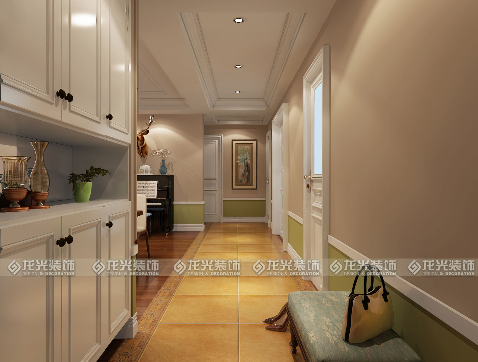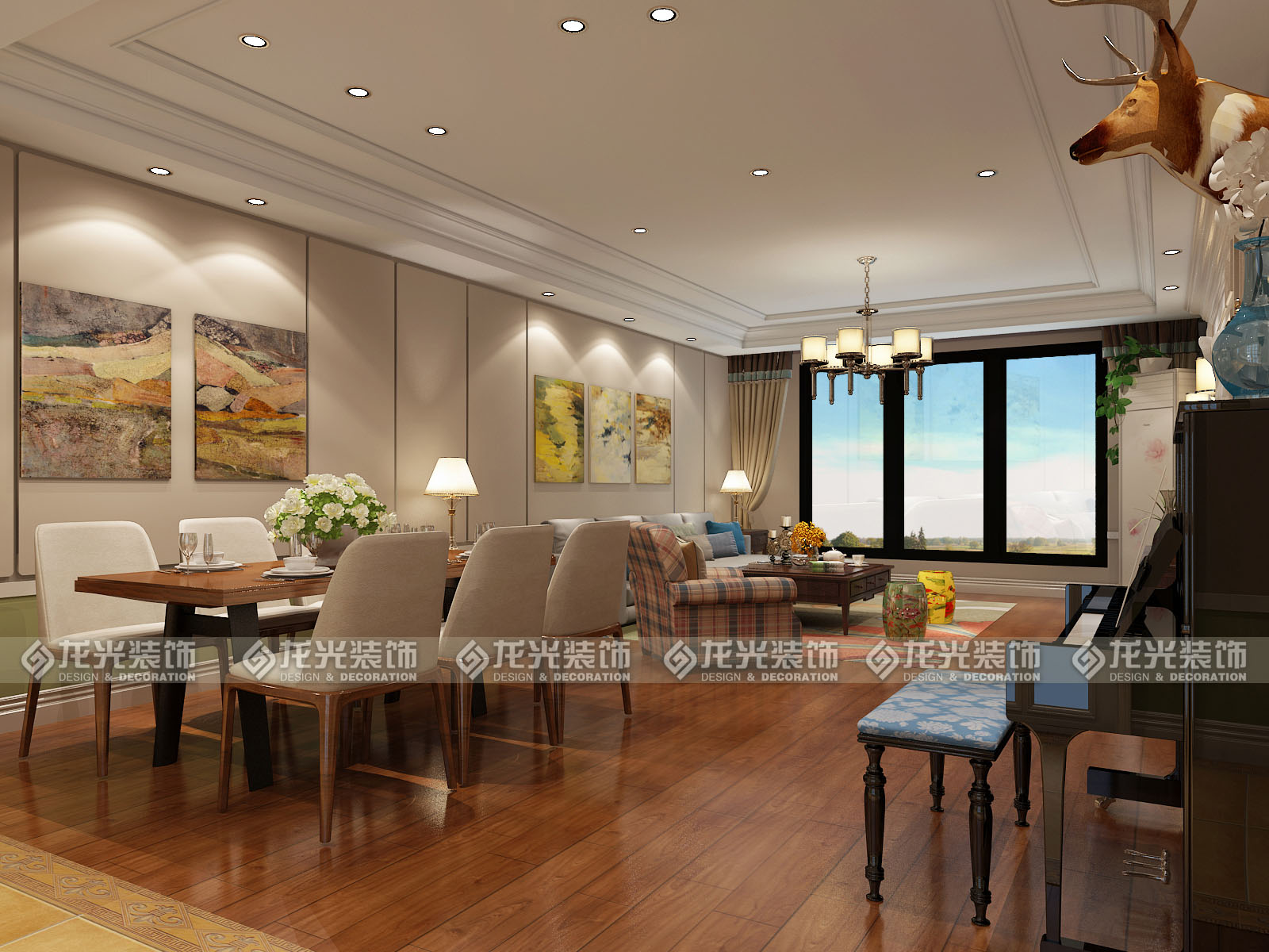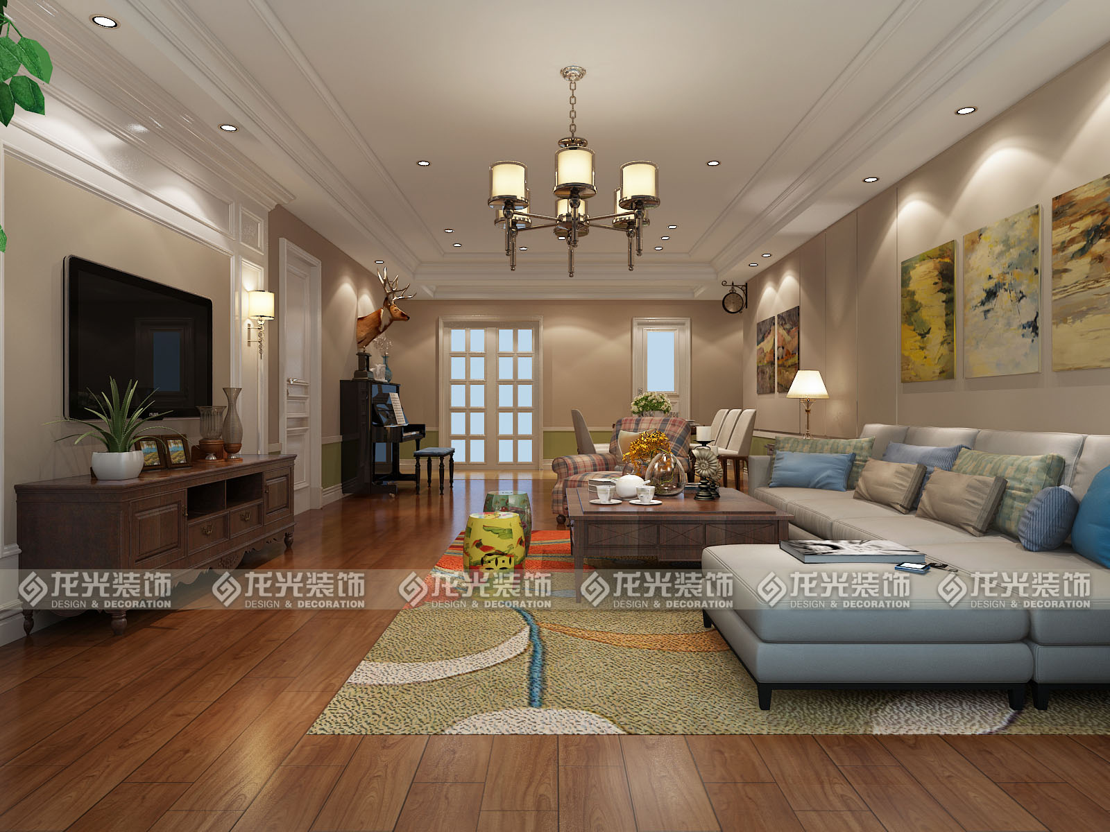 美式的裝飾風格是一種不羈的浪漫格調,是休閑式的家裝風格。對于以移植文化為主導的人文主義下,美式混搭風格成為很多人的最愛, 美式風格的整體裝修是以暗棕土黃為主的自然色彩。 這樣的顏色代表著人們以土地為依靠,在土地的承載中生存與發展,家居采用的是多種風格的混合,所以在美式混搭風格家裝的設計中,設計師主要采用西方文化的元素添入整個美式的家居打造中。