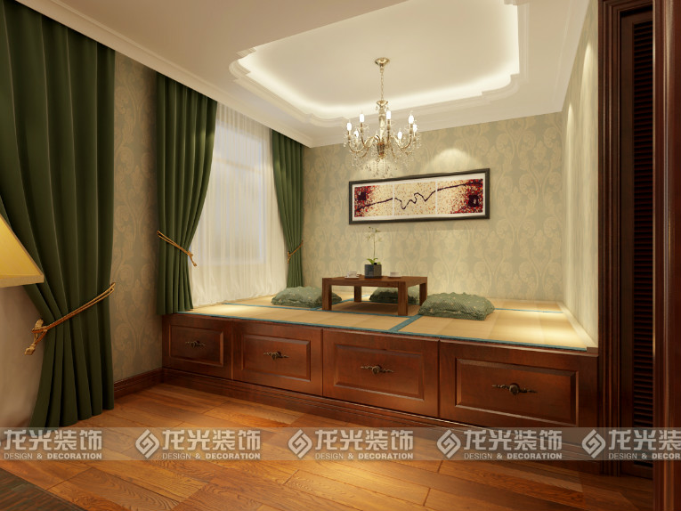 次臥室整體是以地炕區(qū)為主,在地炕的立面可以做出儲存的大抽屜去增加儲物率,頂面是鋪裝可加熱的藤席。