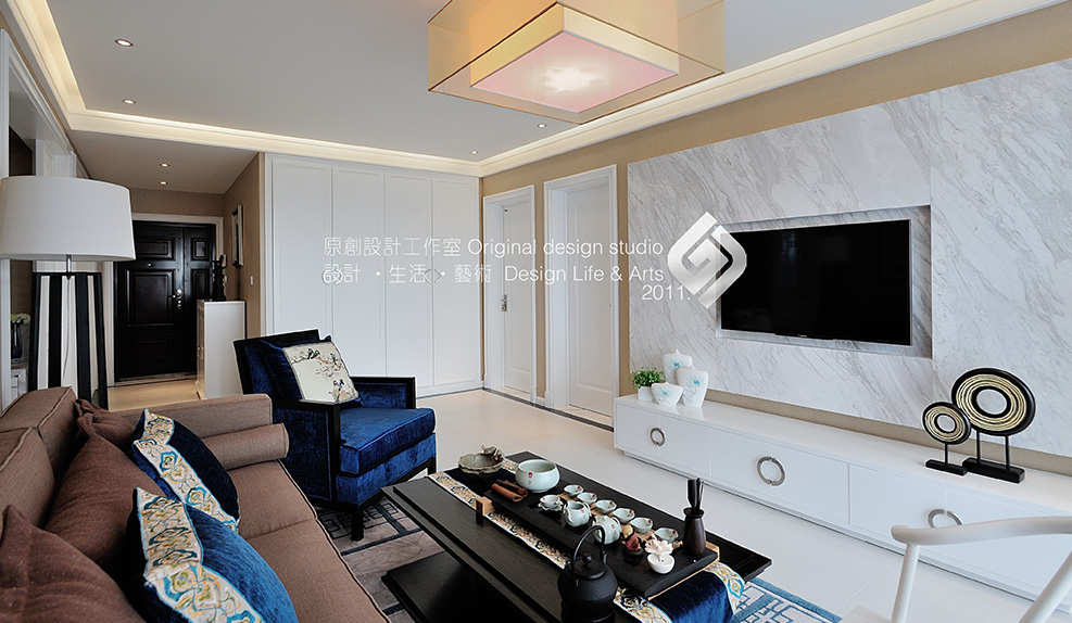 本案硬裝部分,將空間定義在現代中式風格,用簡潔的線條、溫暖的色彩,構成了舒適怡然、樸實清新的空間格調。