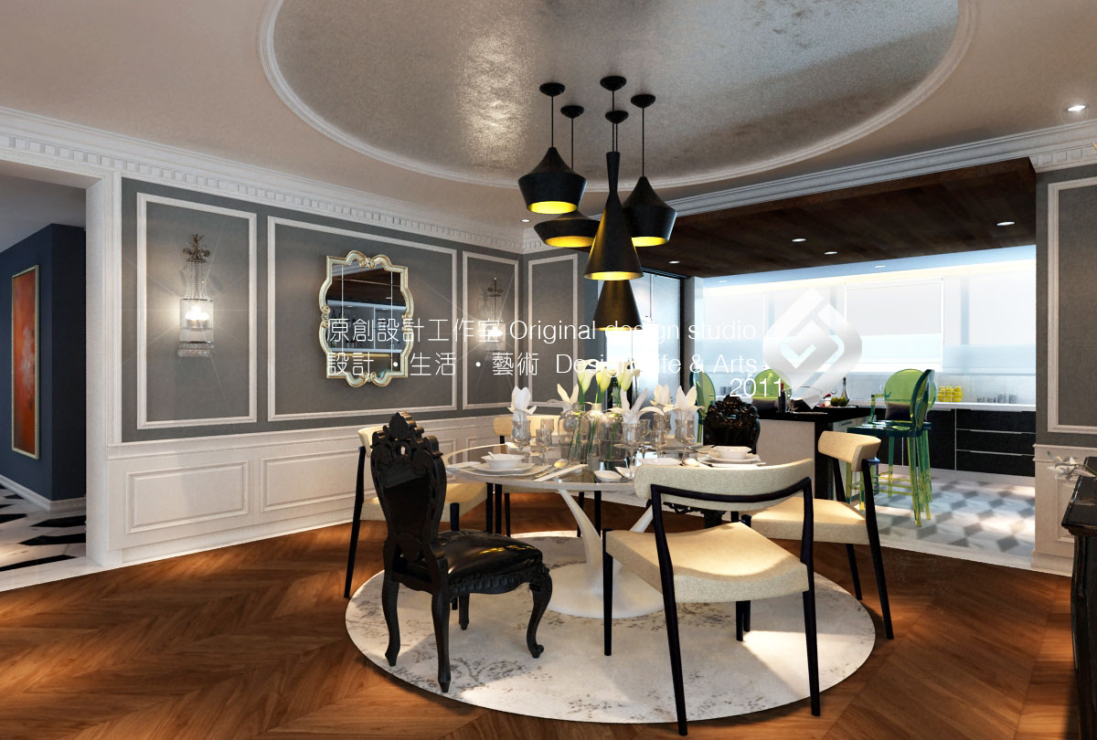 本案帶有都市題材的前衛(wèi)風(fēng)格,強(qiáng)調(diào)室內(nèi)裝潢應(yīng)該既具有歷史的延續(xù)性又不拘泥于傳統(tǒng)的思維方式,講究人情味并使用非傳統(tǒng)的色彩,以期創(chuàng)造一種溶感性與理性、集傳統(tǒng)與現(xiàn)代、揉大眾與行家于一體的“亦此亦彼”的建筑形象。將古典與現(xiàn)代,傳統(tǒng)與時(shí)尚的元素兼容并蓄,既對立又統(tǒng)一。設(shè)計(jì)手法因此也可以達(dá)到多元化,靈活多變,利用多種不同的材質(zhì)組合空間,光亮的,暗淡的,華麗的,古樸的,平滑的,粗糙的相互穿插對比,形成有力量但不用生硬,有活力但不稚嫩的風(fēng)格。