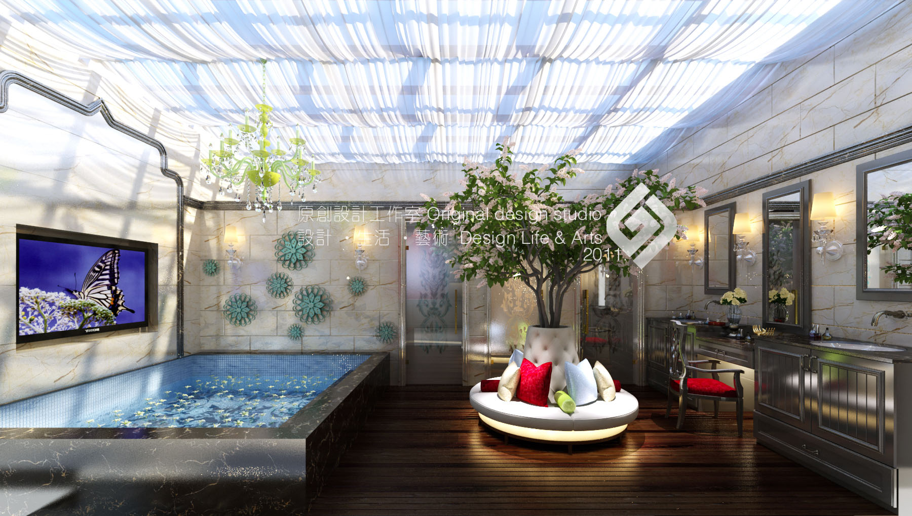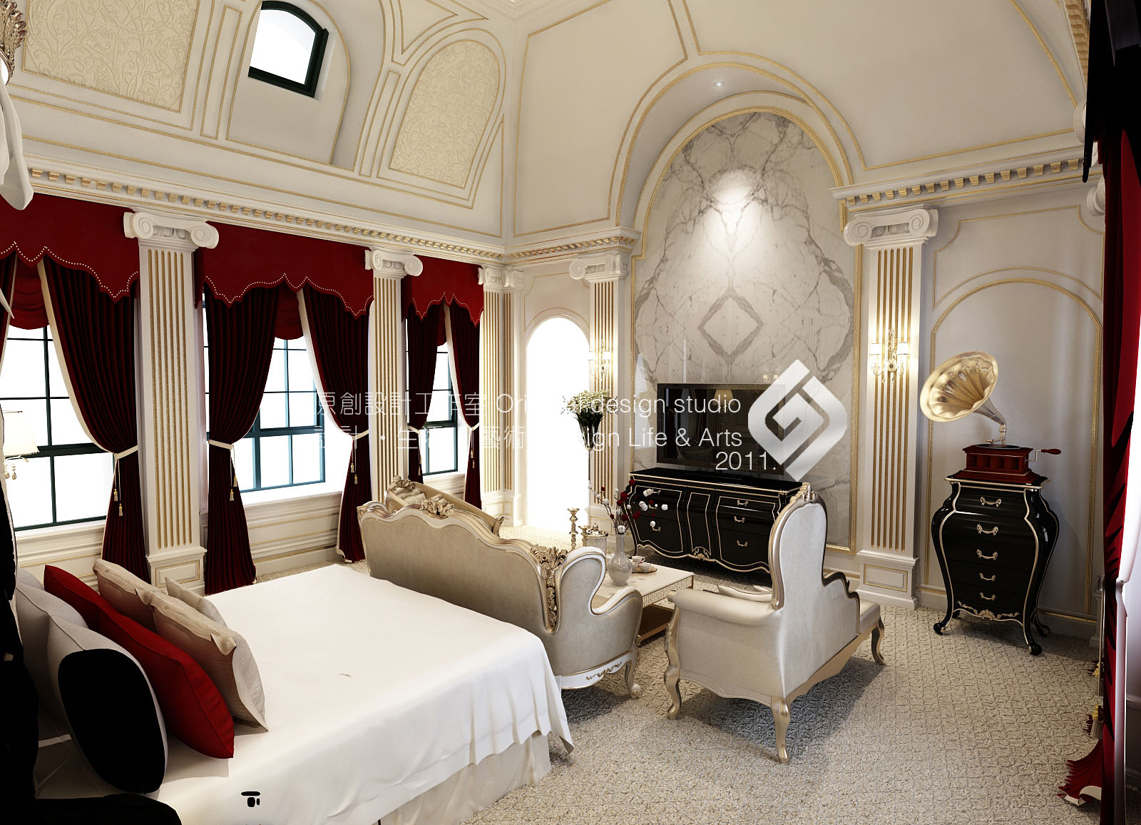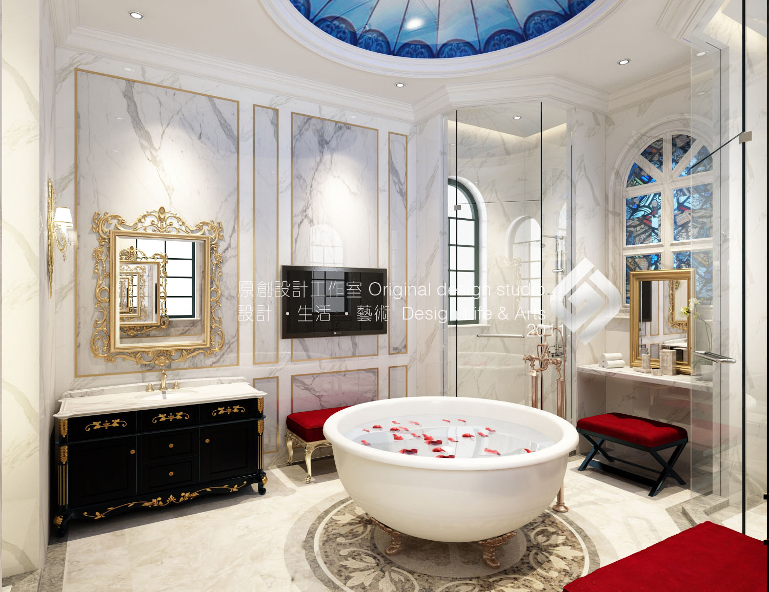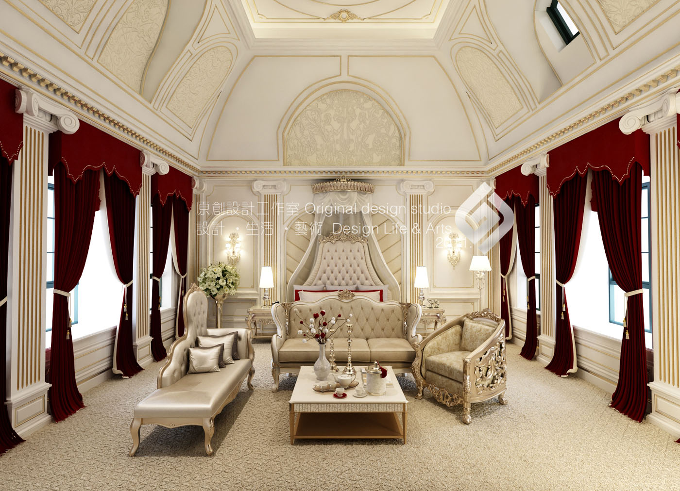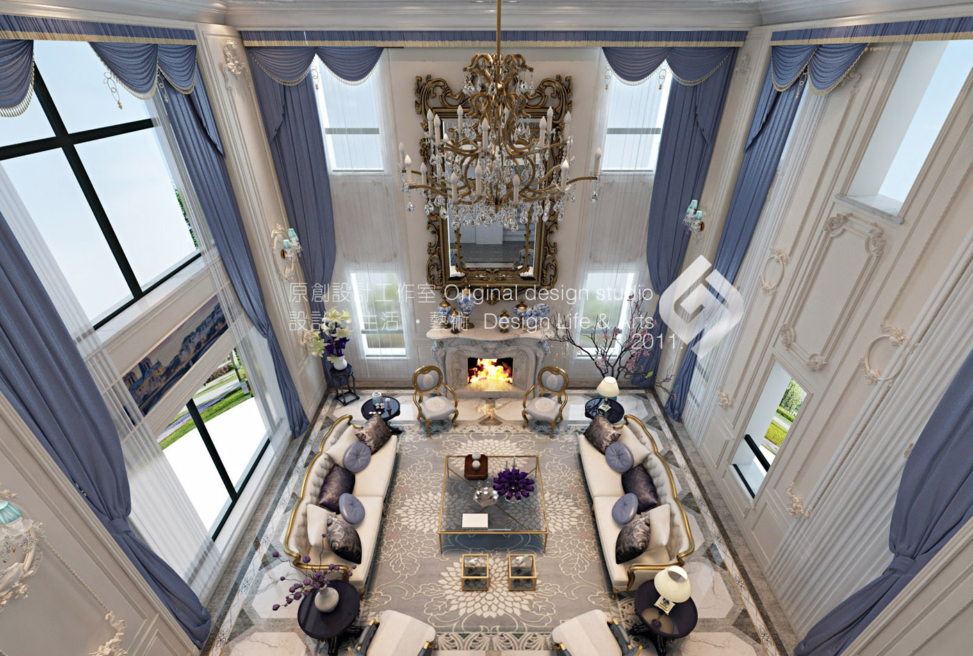 本案立意《塞納河畔》,設計師以法式原有的華麗風格作為主線,結合普羅旺斯的浪漫情懷。保留原風格的文化內涵及細膩的材質和豐富的細節。并結合現代元素改變其繁復的造型,賦予一種全新的語言,使之既有貴族氣質又兼顧現代人的使用及審美。