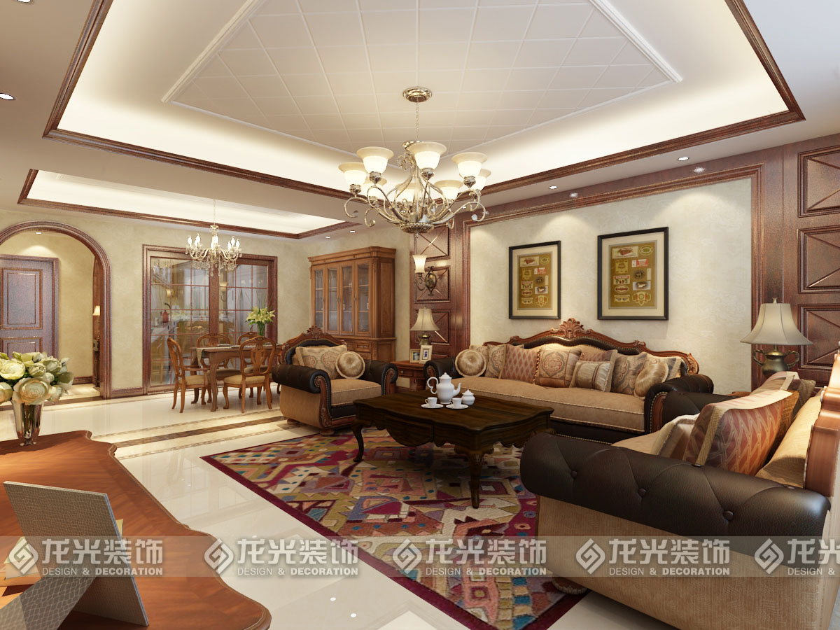 2沙發的背景墻采用木質墻板材質,使得背景墻更加豐富多彩,和整體風格相呼應。