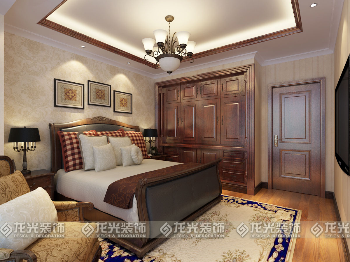 5主臥室吊頂的木線是和客廳餐廳木線一樣的,不同的區域有著相同的元素。