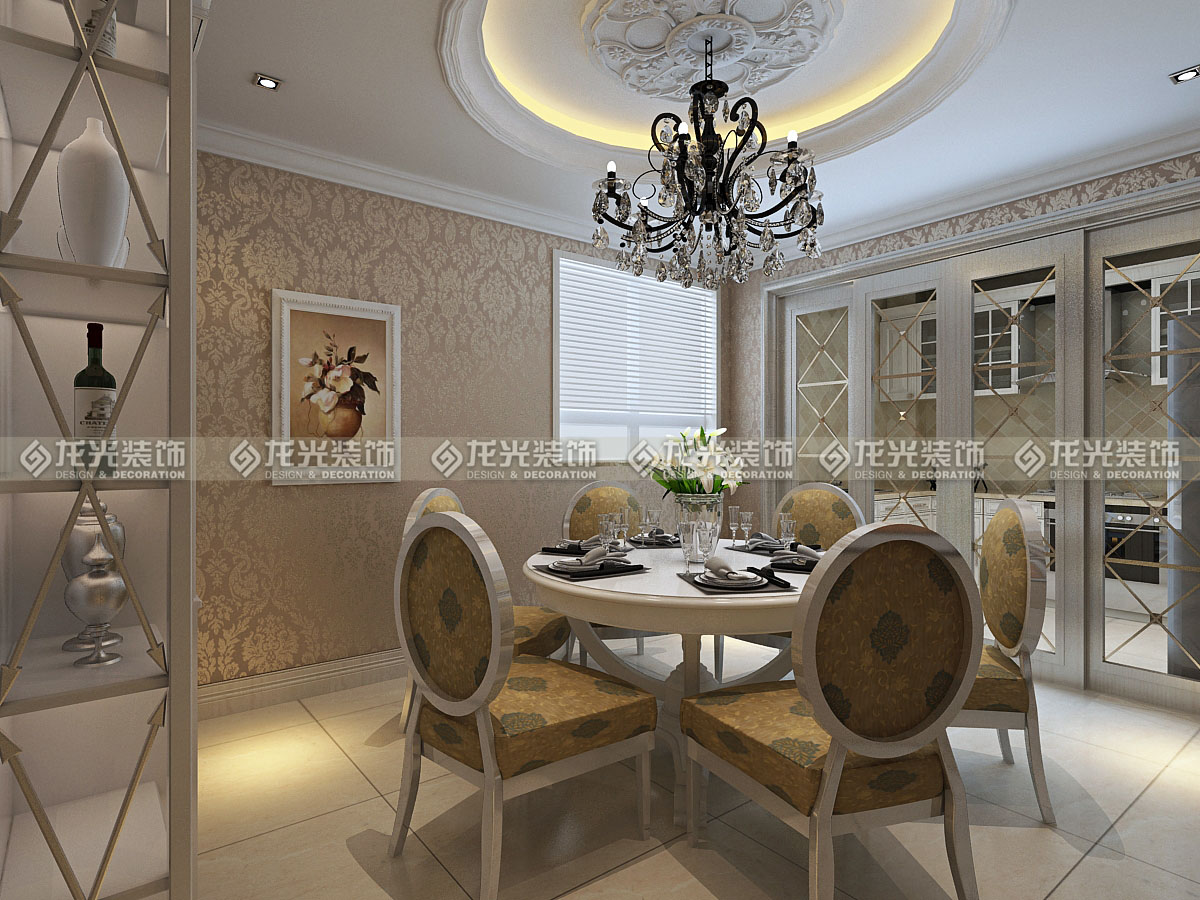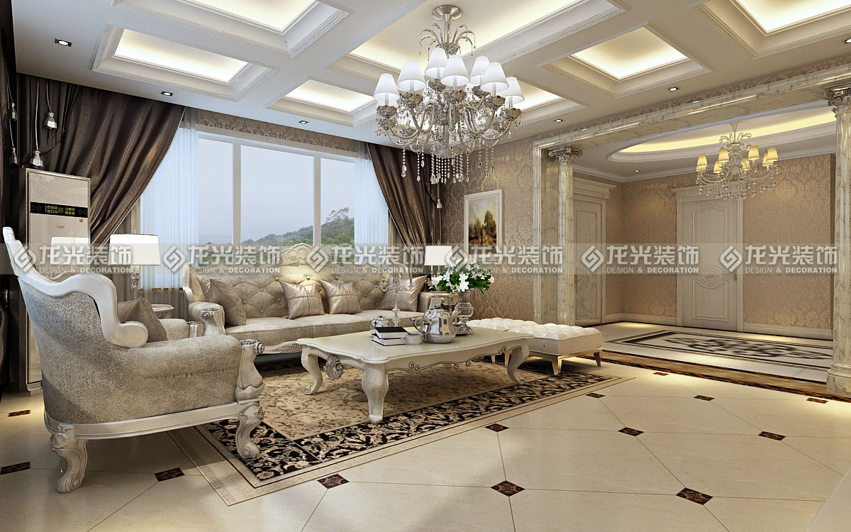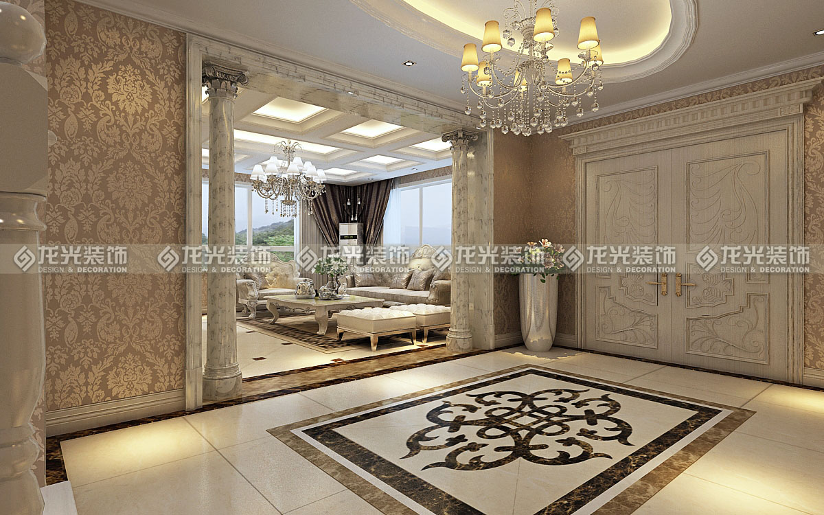 1、門(mén)廳過(guò)廊區(qū)域采用米黃色大理石瓷磚進(jìn)行鋪貼,過(guò)廊頂部運(yùn)用橢圓形懸浮吊頂,充分的將歐式風(fēng)格的高端大氣的感覺(jué)展現(xiàn)出來(lái),造型頂既增加了過(guò)廊的延伸感,又使整個(gè)區(qū)域的頂?shù)卦煨陀辛撕芎玫暮魬?yīng),地面采用理 石拼花式設(shè)計(jì),使得地面更加豐富多彩。